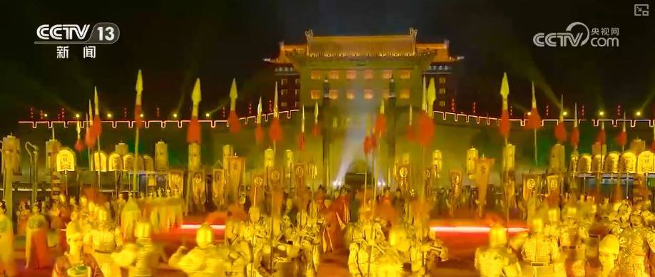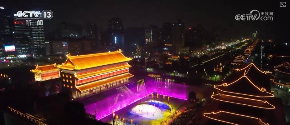 夜幕下的西安城墙永宁门灯光璀璨,每晚以盛唐礼仪文化为主题的“大唐迎宾盛礼”准时上演。游客在行进式的入城迎宾礼中,感受西安深厚的文化底蕴。