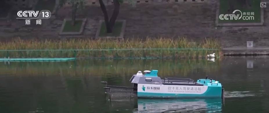护城河中,无人驾驶清洁船正在开展每日巡检工作。这艘清洁船不仅能够自动清理河面杂物,还能将多种水质指标实时传送到数百米外的西安城墙“数字方舱”综合管理平台。
